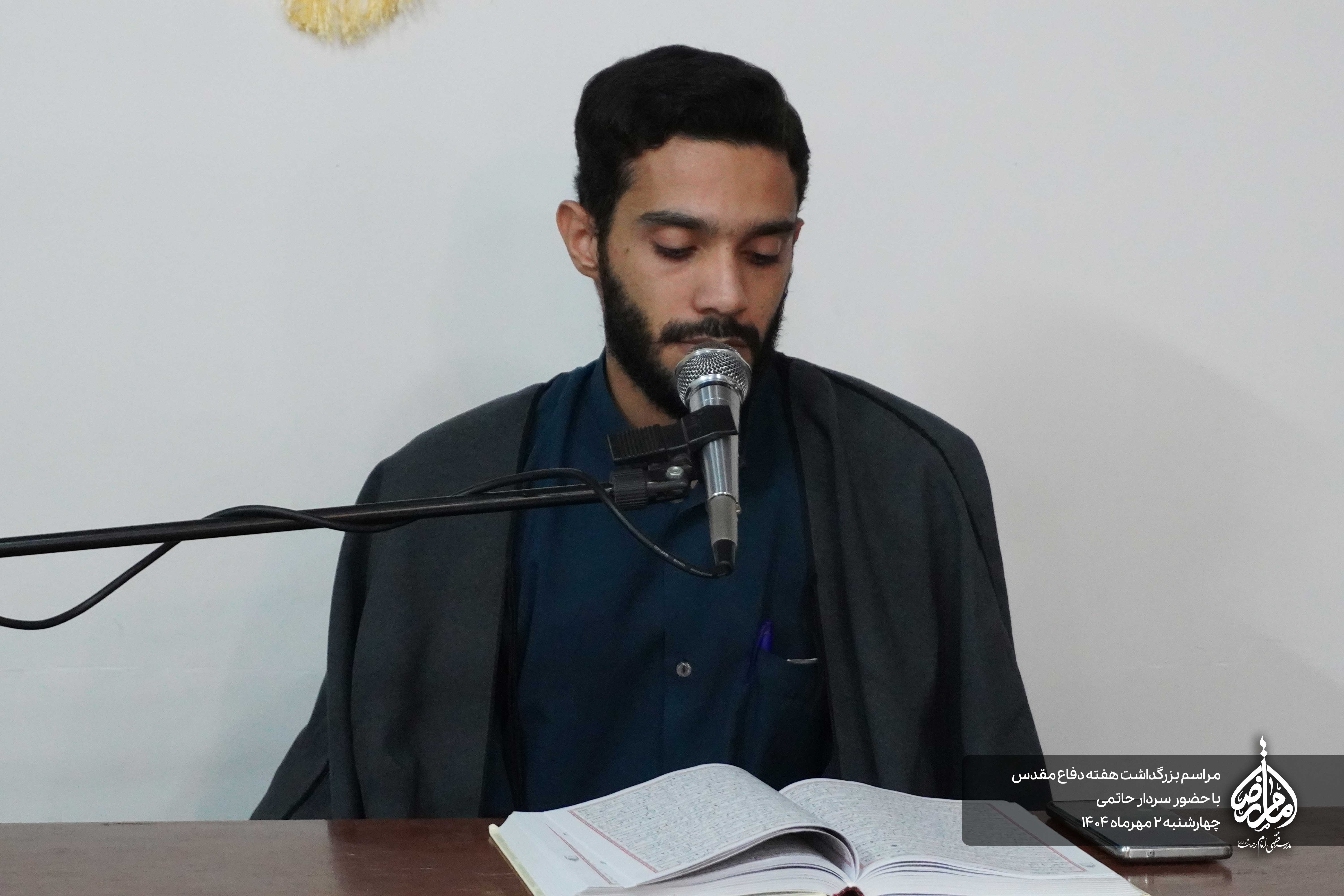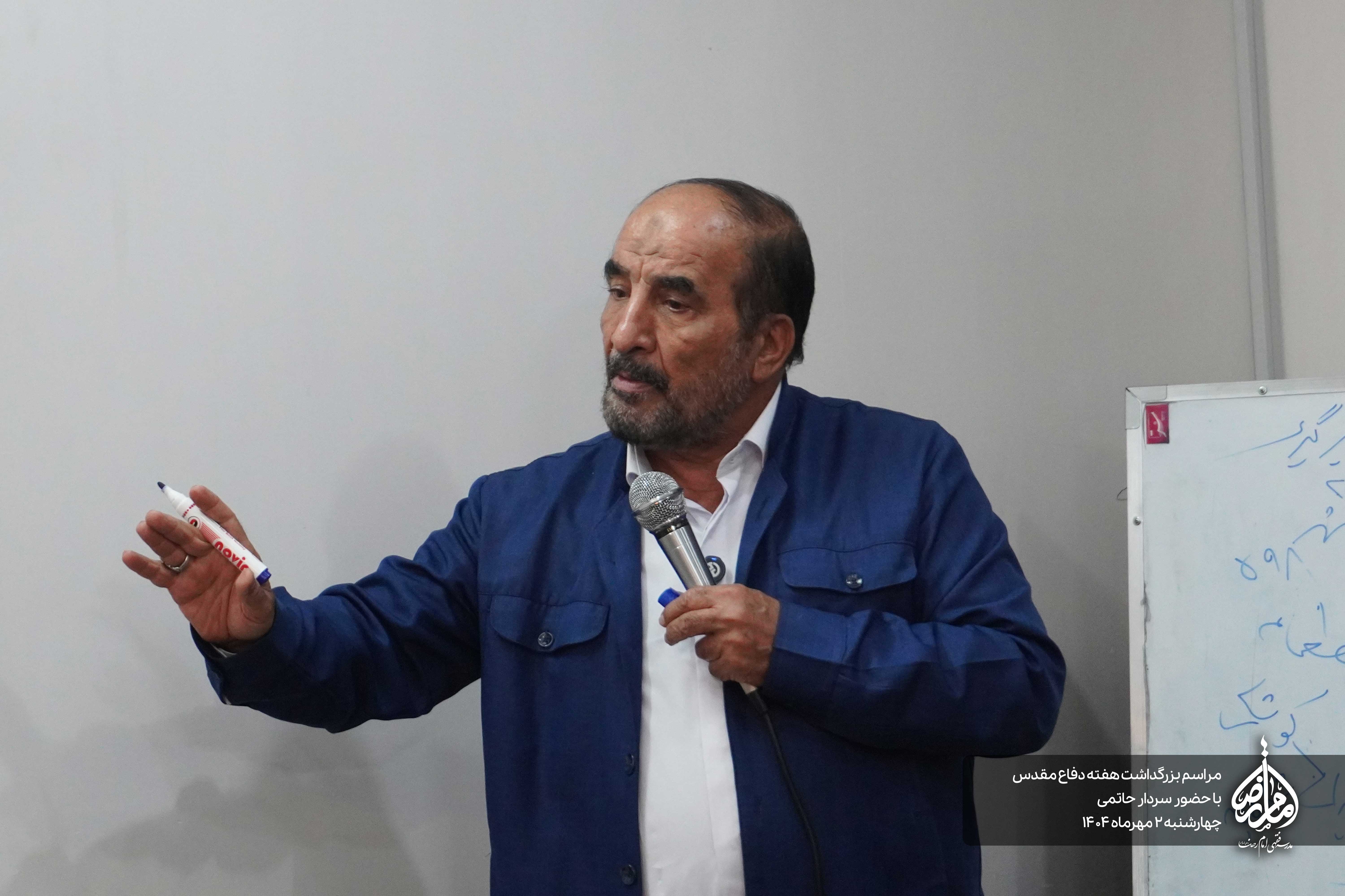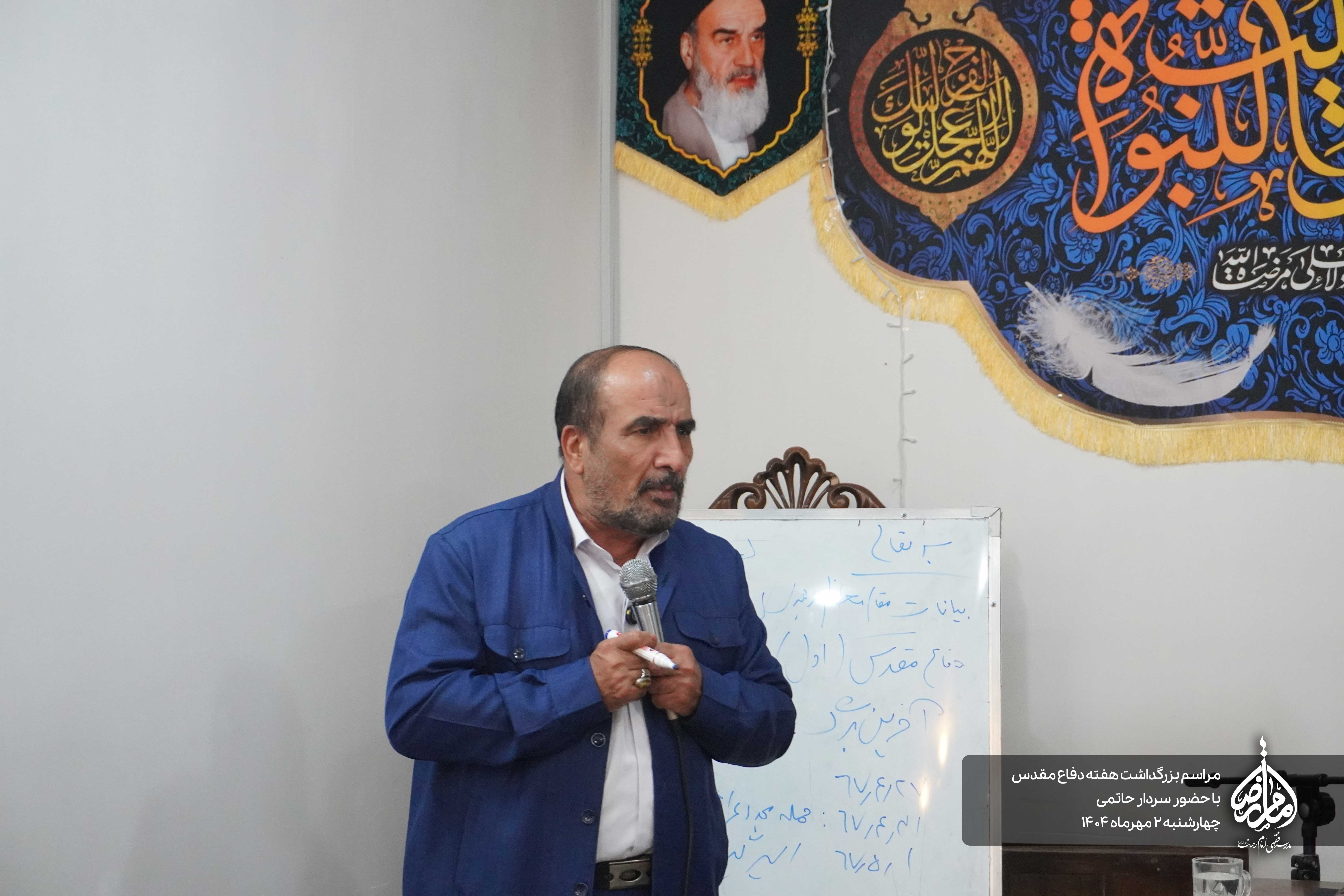 این برنامه با تلاوت آیاتی از قرآن کریم آغاز شد و فضای جلسه معطر به یاد شهیدان والامقام گردید. سپس سردار حاتمی، از یادگاران دوران دفاع مقدس، در سخنرانی خود به بیان خاطرات و نکاتی از رشادتها و ایثار رزمندگان اسلام پرداخت.