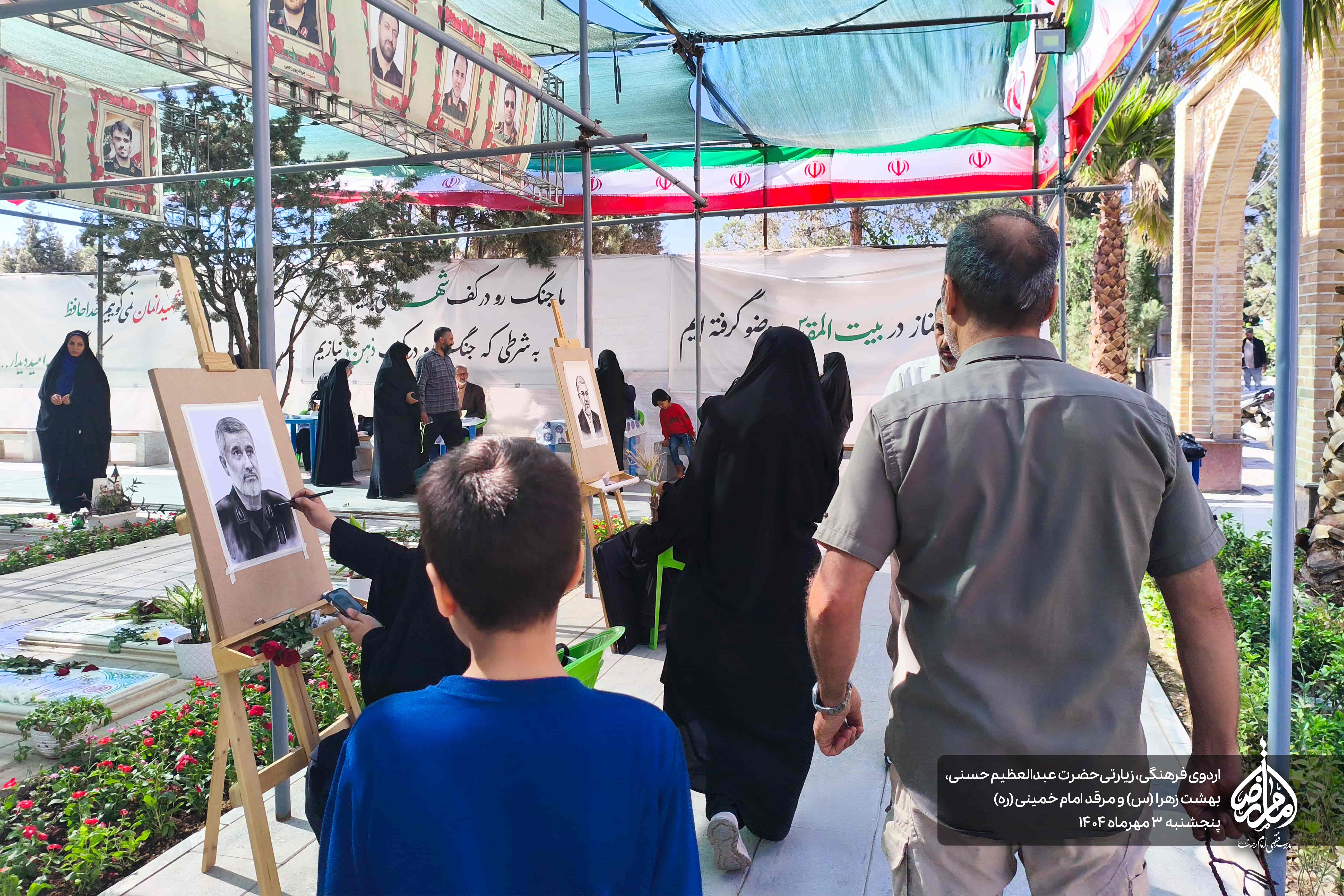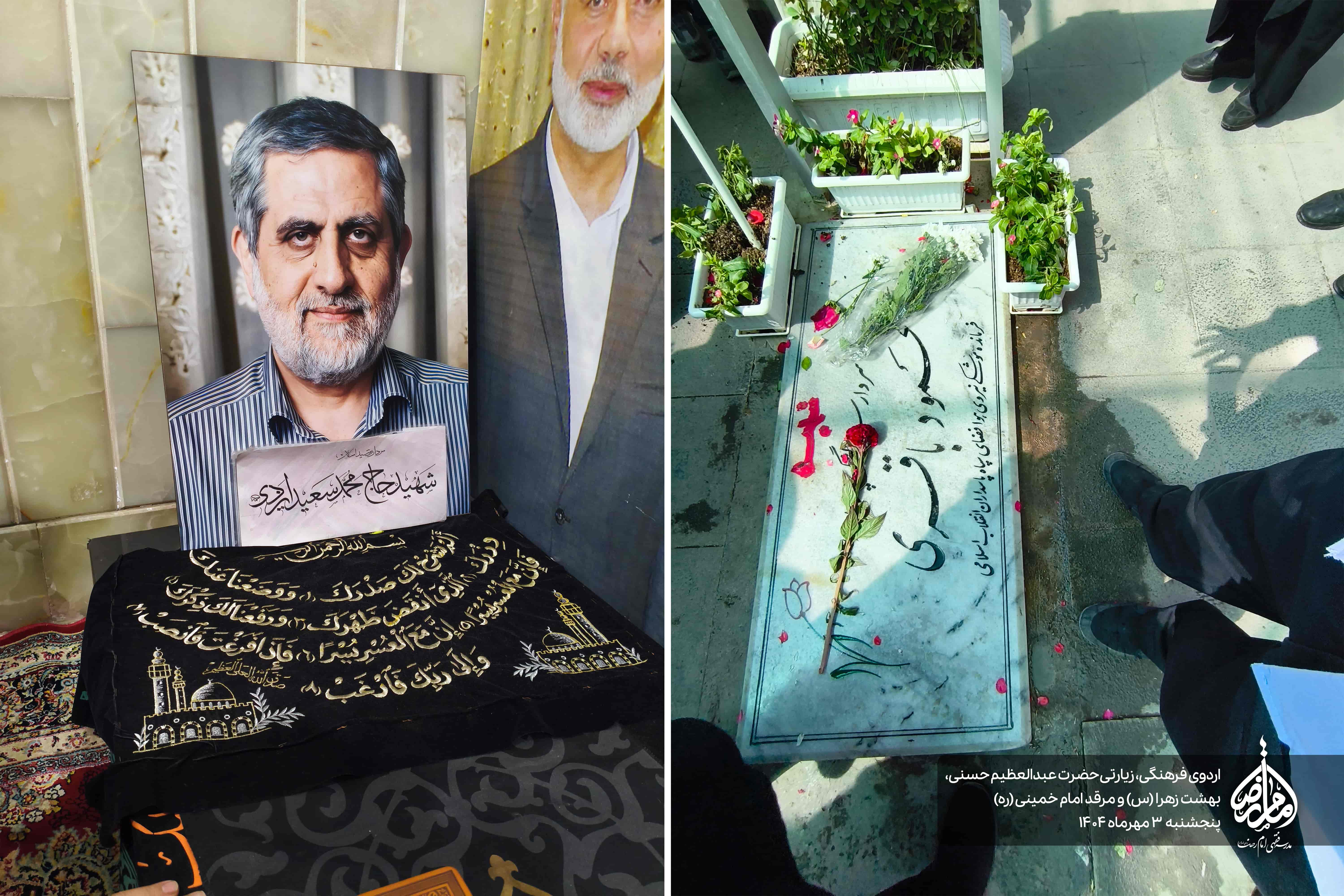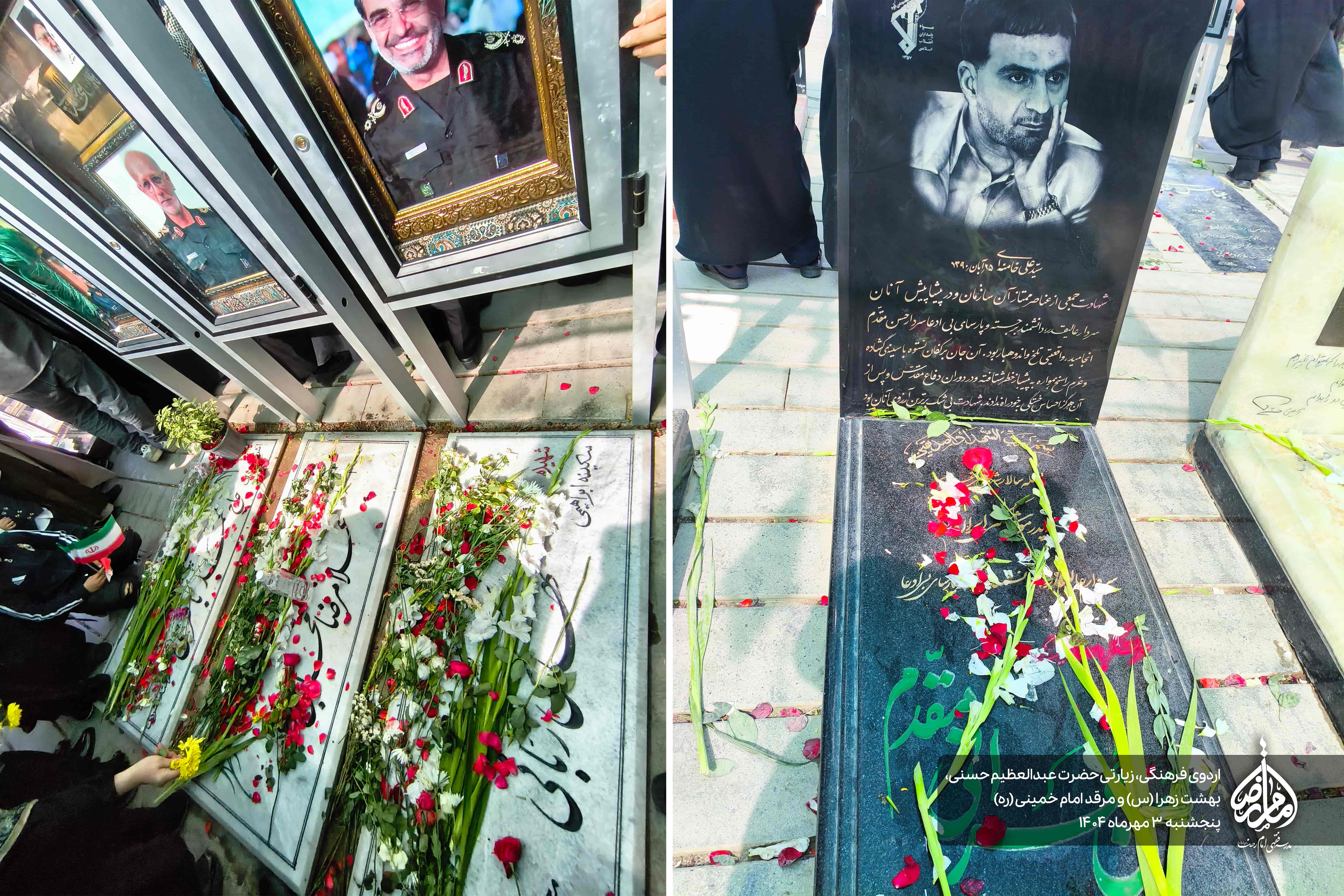 در این بخش، زائران با حضور در کنار مزار مطهر شهدای جنگ دوازدهروزه از جمله سردار حاجیزاده، سردار ایزدی، سردار باقری و دیگر سرداران مقاومت اسلامی، فاتحه و زیارت عاشورا قرائت کردند.